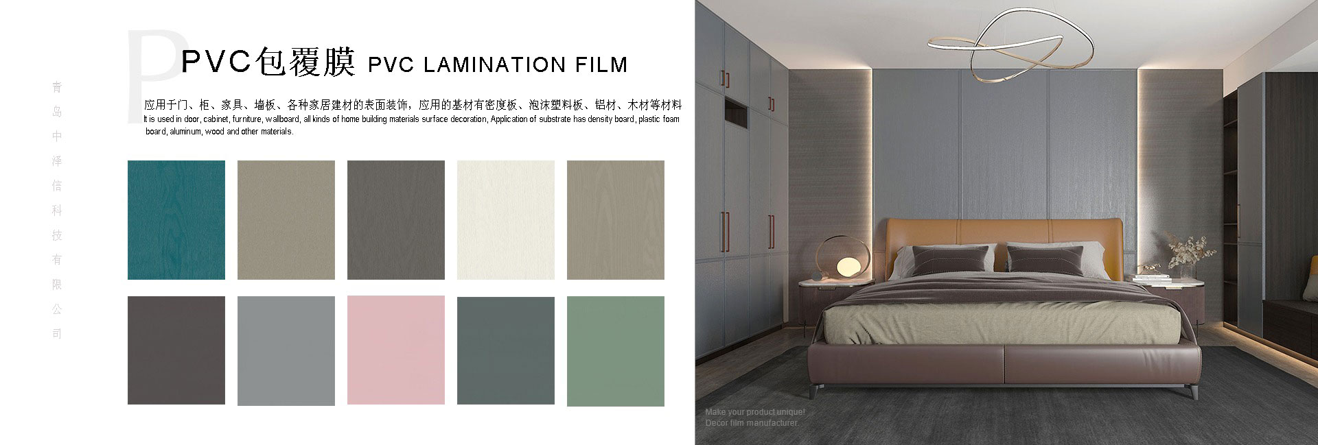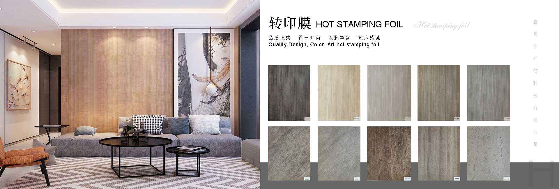 青島中澤信科技有限公司地處中國山東省青島市,致力于多種裝飾膜的研發(fā)和生產(chǎn),所生產(chǎn)的熱轉(zhuǎn)印膜和包覆膜廣泛應(yīng)用于多種家裝材料如建材、家具、裝飾框等。本公司擁有60多名專業(yè)工人,10000平米標(biāo)準(zhǔn)廠房,20年印刷行業(yè)經(jīng)驗(yàn),15年熱轉(zhuǎn)印行業(yè)經(jīng)驗(yàn),配備8套8色印刷生產(chǎn)線,采用韓國技術(shù)以及環(huán)保級原材料具備,ISO認(rèn)證。工廠距離青島國際機(jī)場和青島港不足一小時車距這些都是我公司能為全球客戶提供高質(zhì)量產(chǎn)品以及維持良好合作的重要因素。